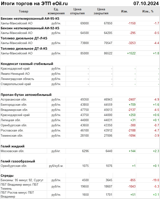 Итоги торгов на ЭТП eOil.ru 7 октября 2024