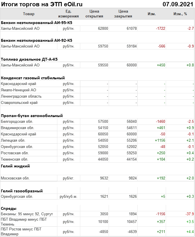 Итоги торгов на ЭТП eOil.ru 7 сентября 2021