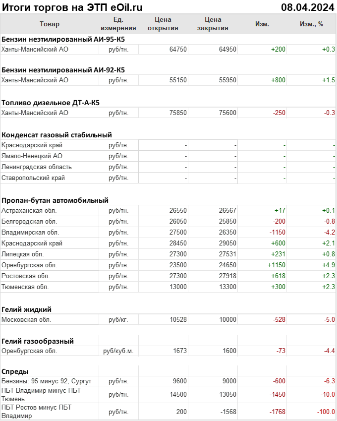 Итоги торгов на ЭТП eOil.ru 8 апреля 2024