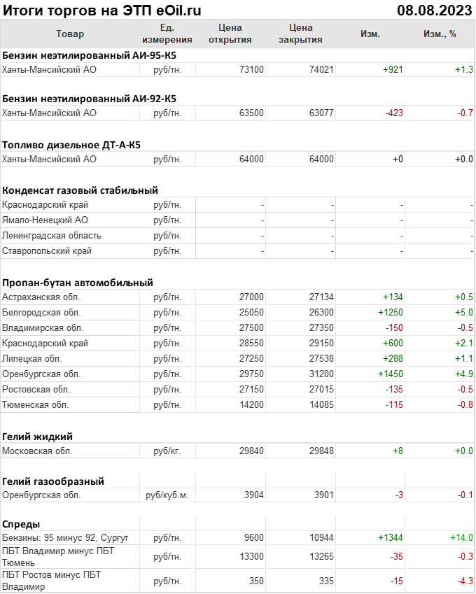 Итоги торгов на ЭТП eOil.ru 8 августа 2023