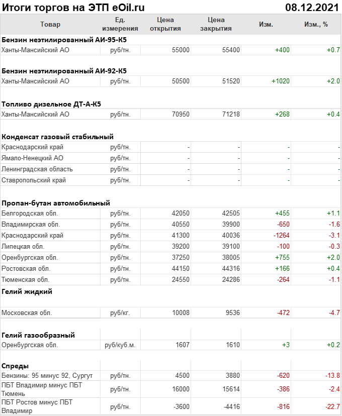 Итоги торгов на ЭТП eOil.ru 8 декабря 2021