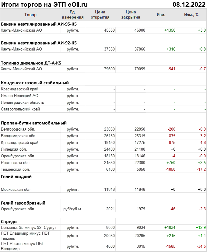 Итоги торгов на ЭТП eOil.ru 8 декабря 2022