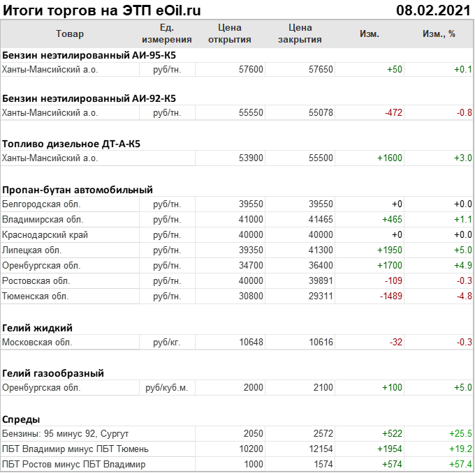 Итоги торгов на ЭТП eOil.ru 8 февраля 2021
