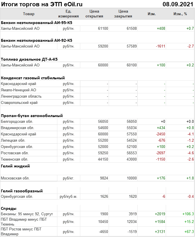 Итоги торгов на ЭТП eOil.ru 8 сентября 2021