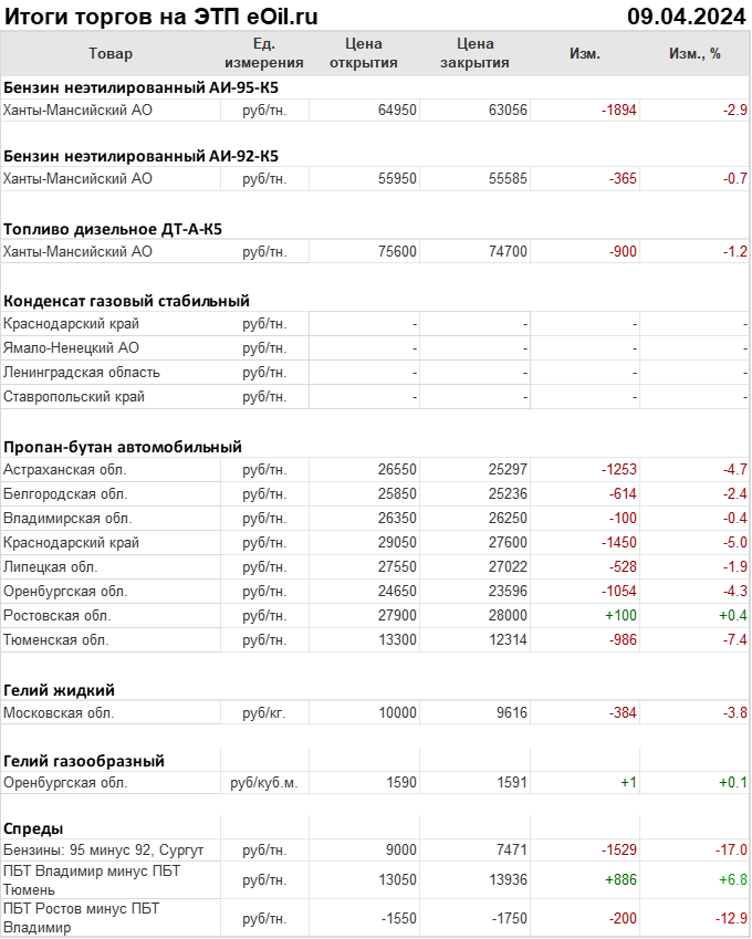Итоги торгов на ЭТП eOil.ru 9 апреля 2024