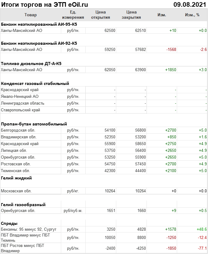 Итоги торгов на ЭТП eOil.ru 9 августа 2021