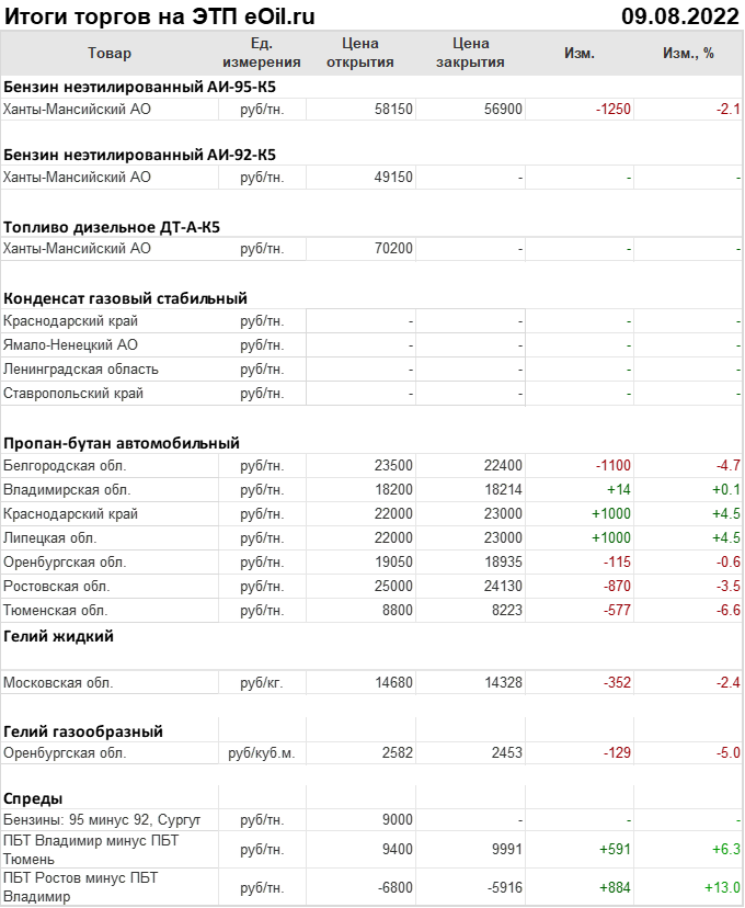 Итоги торгов на ЭТП eOil.ru 9 августа 2022
