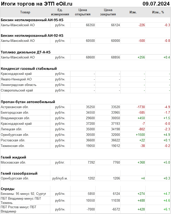 Итоги торгов на ЭТП eOil.ru 9 июля 2024