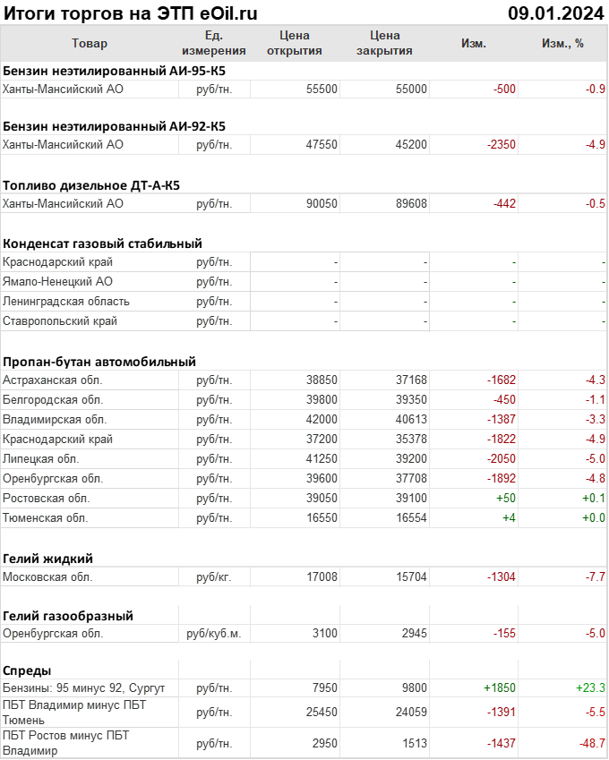 Итоги торгов на ЭТП eOil.ru 9 января 2024