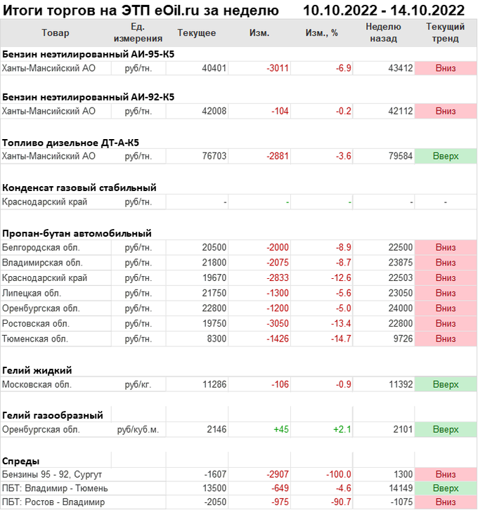 Итоги торгов на ЭТП eOil.ru с 10 по 14 октября 2022 года