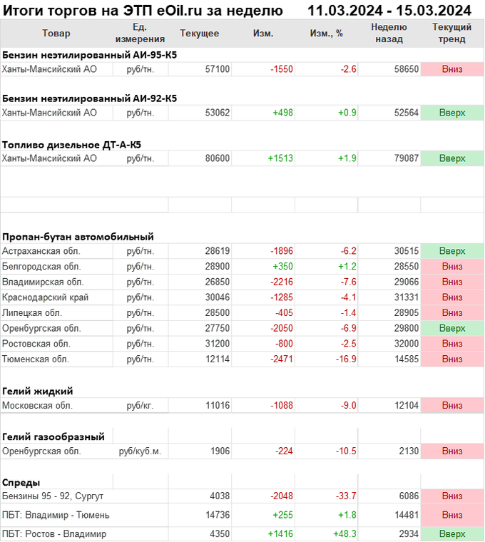 Итоги торгов на ЭТП eOil.ru с 11 по 15 марта 2024 года