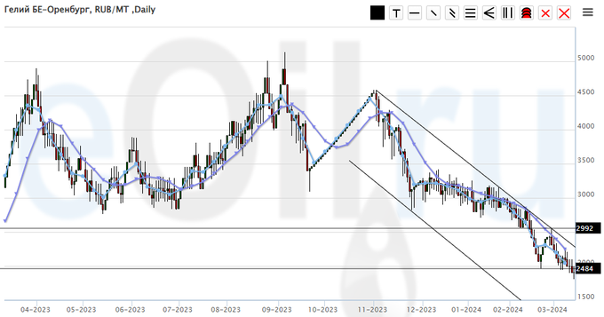 Цены на гелий газообразный, базис поставки Оренбургская область, снизились за неделю на 224 рубля до 1906 рублей за кубический метр.