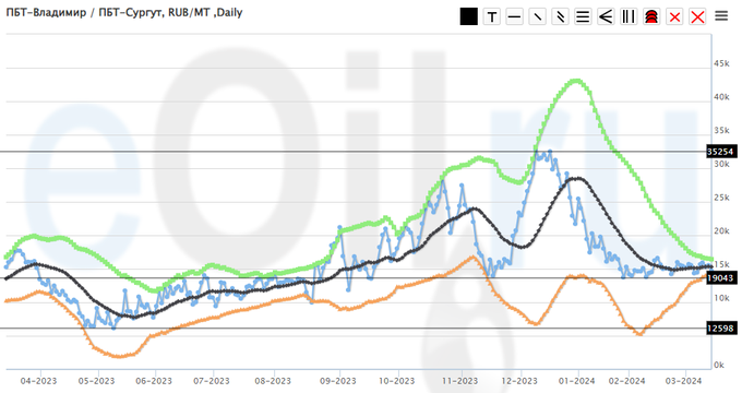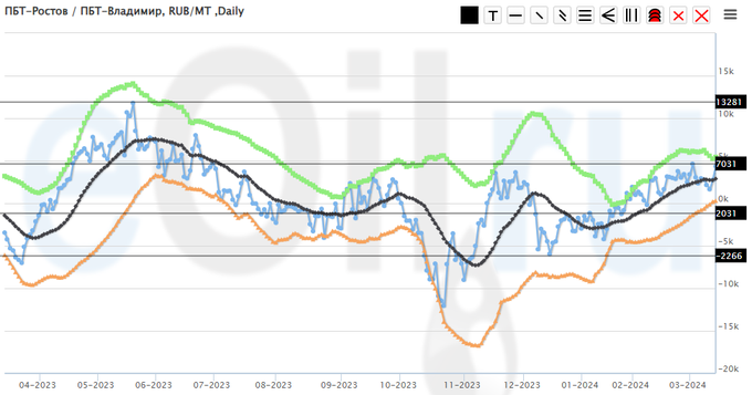 Разница цен между ПБТ на базисе Ростов и ПБТ на базисе Владимир.