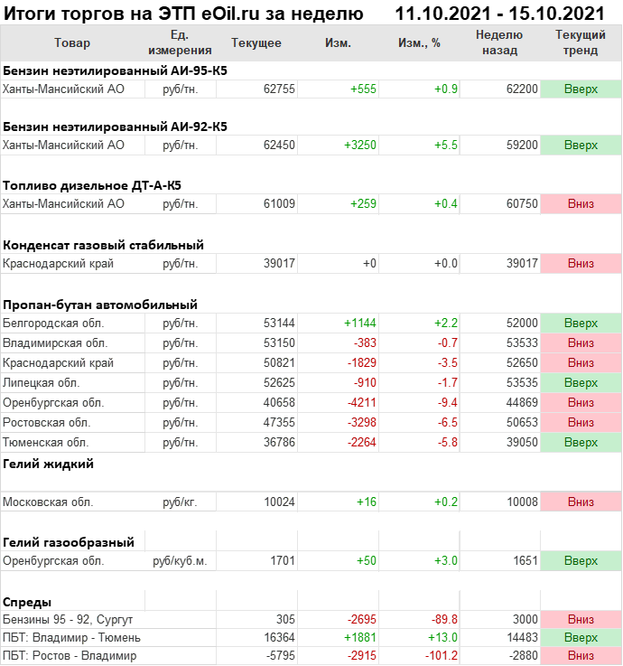 Итоги торгов на ЭТП eOil.ru с 11 по 15 октября 2021