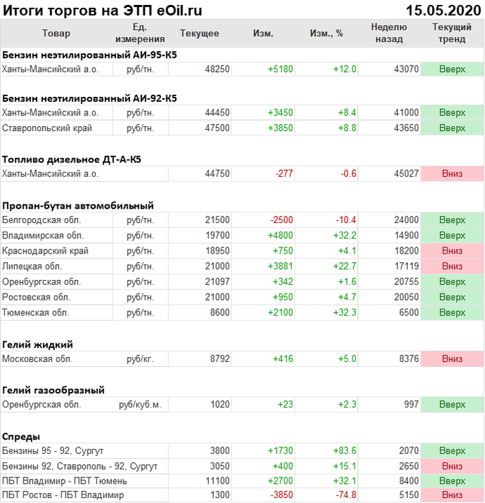 Итоги торгов на ЭТП eOil.ru с 12 по 15 мая 2020
