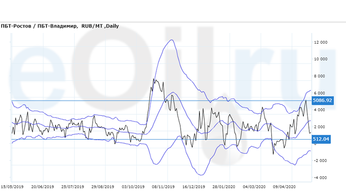Разница цен между ПБТ на базисе Ростов и ПБТ на базисе Владимир.
