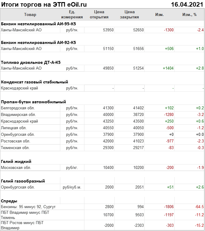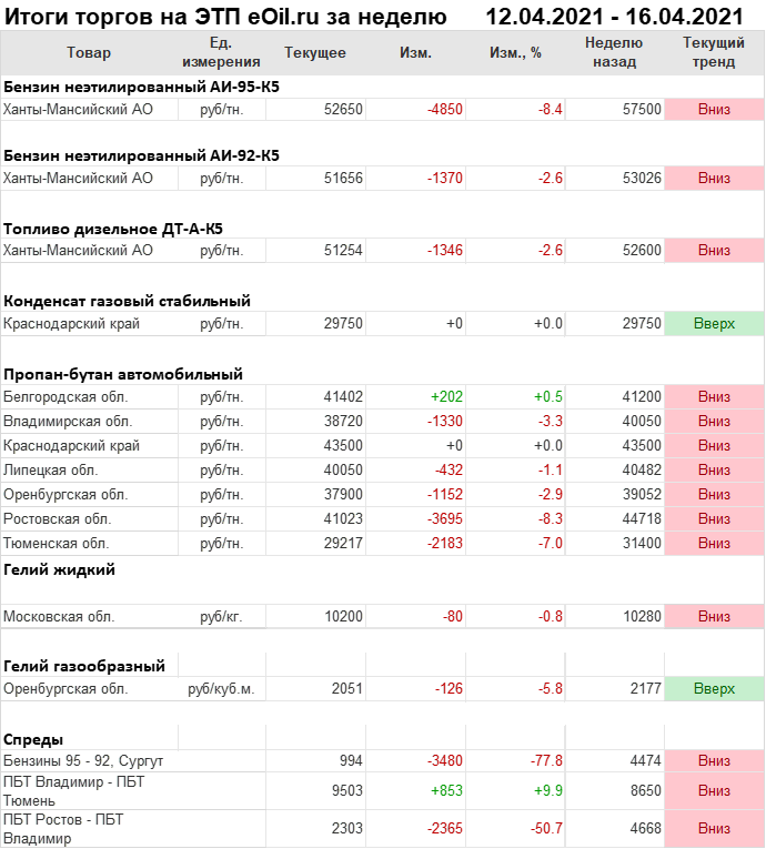 Итоги торгов на ЭТП eOil.ru с 12 по 16 апреля 2021