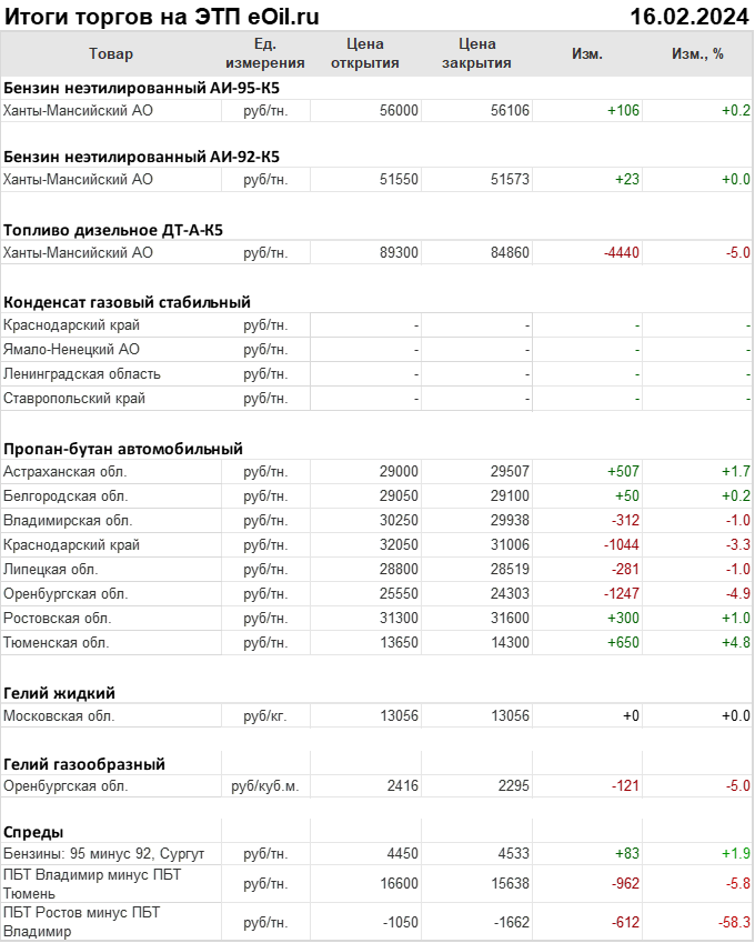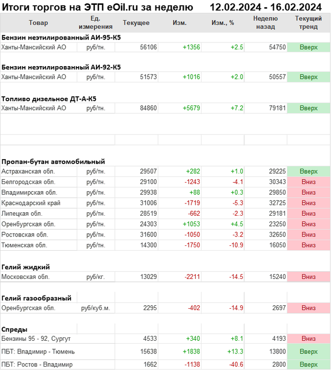 Итоги торгов на ЭТП eOil.ru с 12 по 16 февраля 2024 года