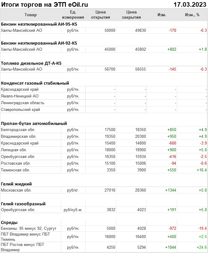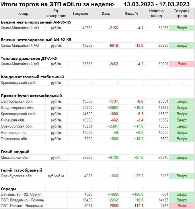 Итоги торгов на ЭТП eOil.ru с 13 по 17 марта 2023 года