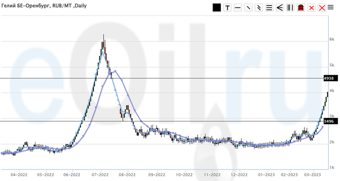 Цены на гелий газообразный, базис поставки Оренбургская область, выросли за неделю на 868 рублей до 4023 рублей за кубический метр.