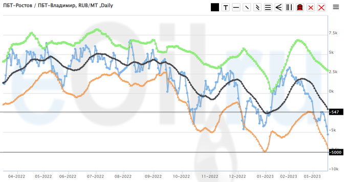 Разница цен между ПБТ на базисе Ростов и ПБТ на базисе Владимир.