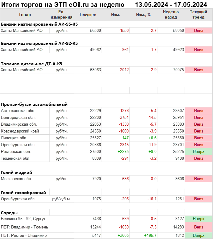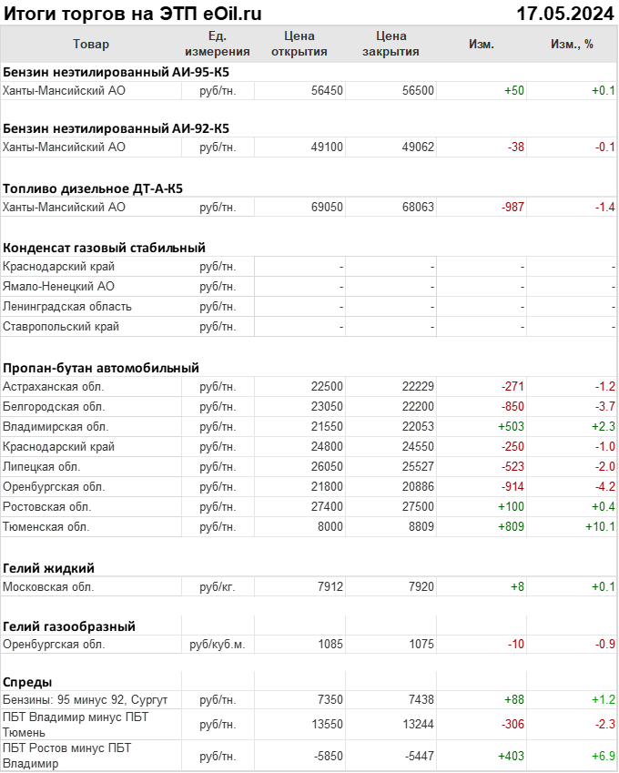 Итоги торгов на ЭТП eOil.ru с 13 по 17 мая 2024 года