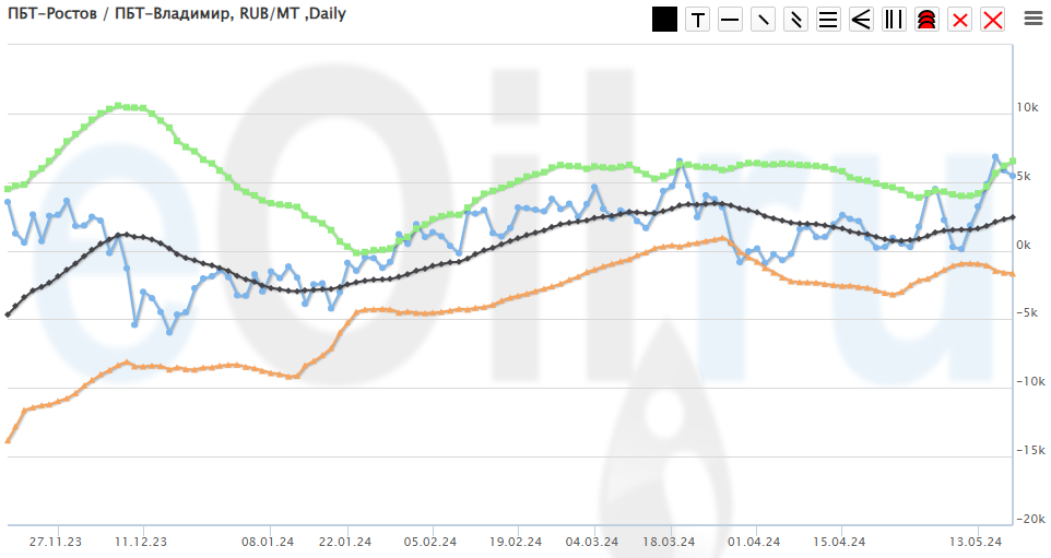 Разница цен между ПБТ на базисе Ростов и ПБТ на базисе Владимир.