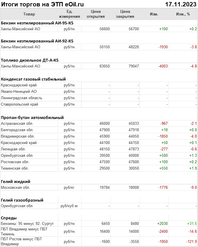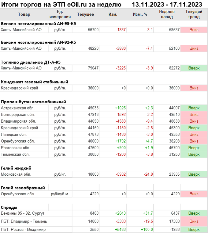 Итоги торгов на ЭТП eOil.ru с 13 по 17 ноября 2023 года