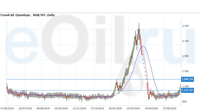 Цены на гелий газообразный, базис поставки Оренбургская область, выросли за неделю на 129 рублей до 1181 рубля за кубический метр.