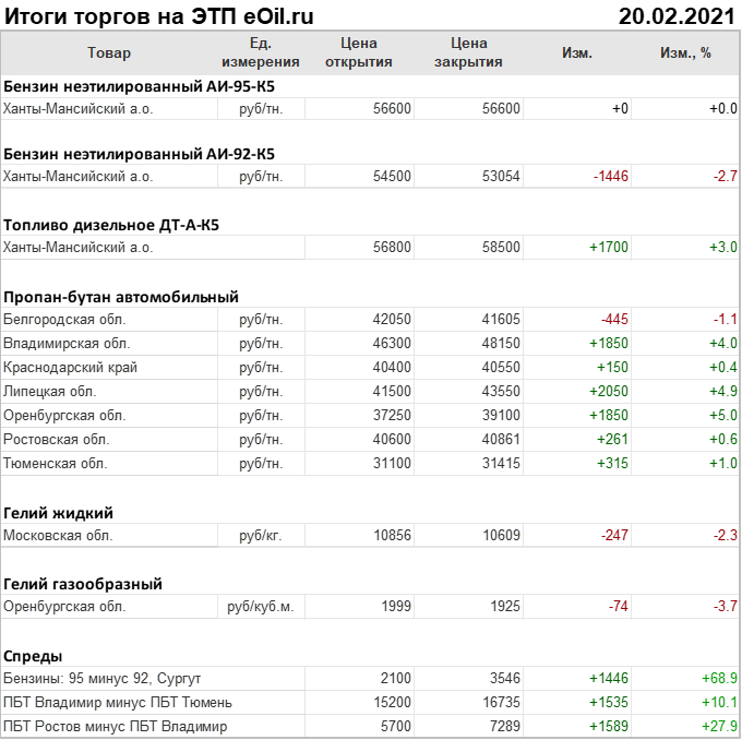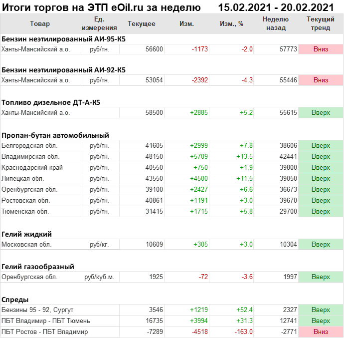 Итоги торгов на ЭТП eOil.ru с 15 по 20 февраля 2021