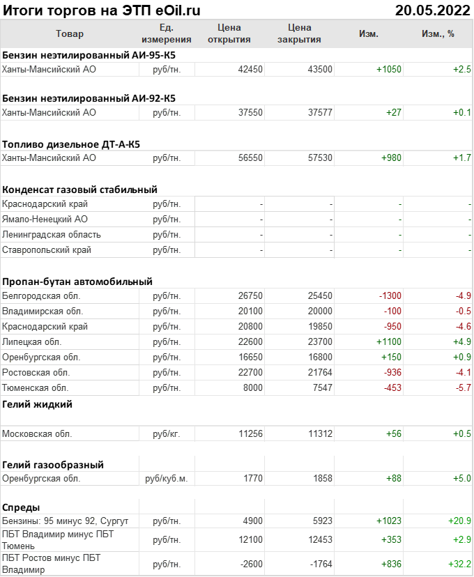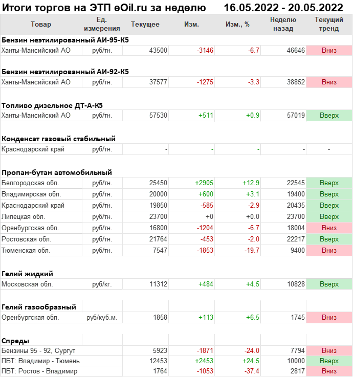 Итоги торгов на ЭТП eOil.ru с 16 по 20 мая 2022 года