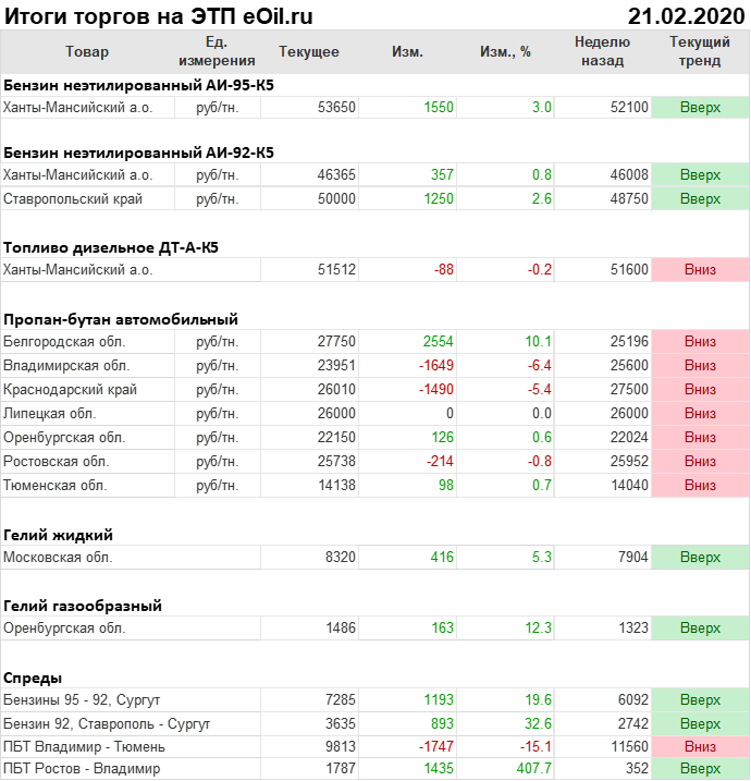 Итоги торгов на ЭТП eOil.ru с 17 по 21 февраля 2020