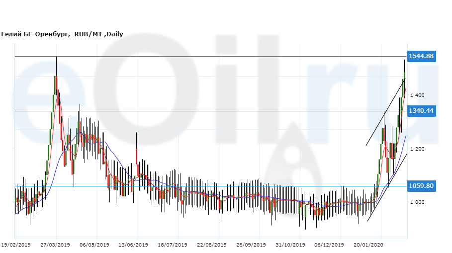 Цены на гелий газообразный, базис поставки Оренбургская область, выросли за неделю на 163 рубля до 1486 рублей за тонну.