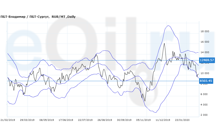 Разница цен между ПБТ на базисе Владимир и ПБТ на базисе Сургут (Ханты-Мансийский а.о.).