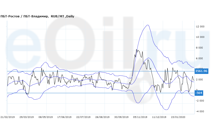 Разница цен между ПБТ на базисе Ростов и ПБТ на базисе Владимир.
