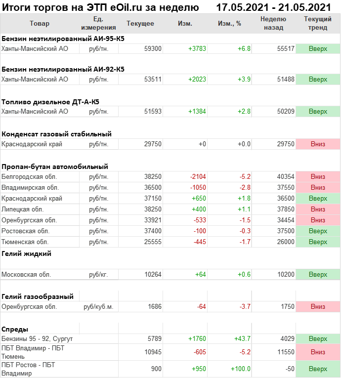 Итоги торгов на ЭТП eOil.ru с 17 по 21 мая 2021