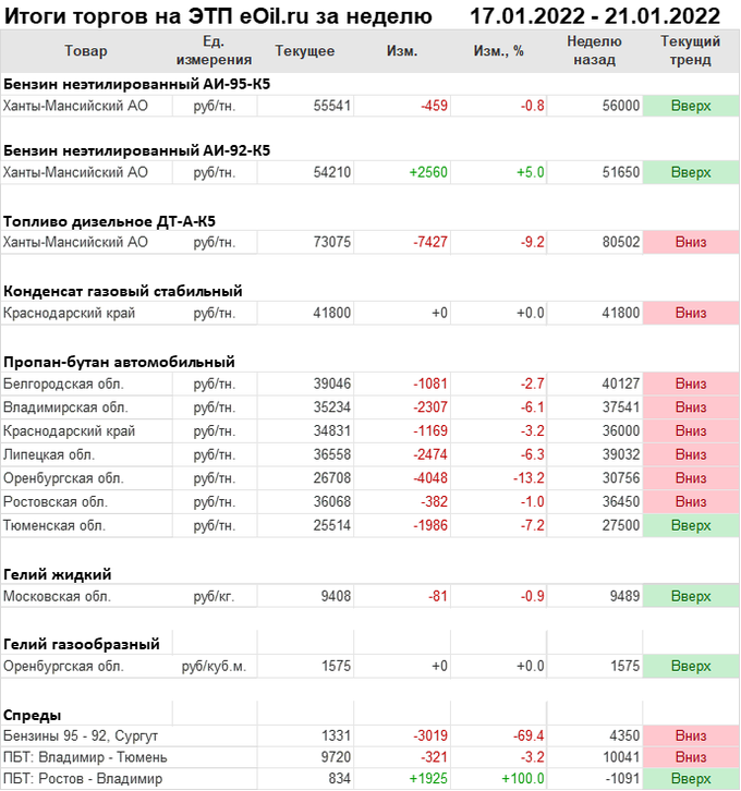 Итоги торгов на ЭТП eOil.ru с 17 по 21 января 2022 года