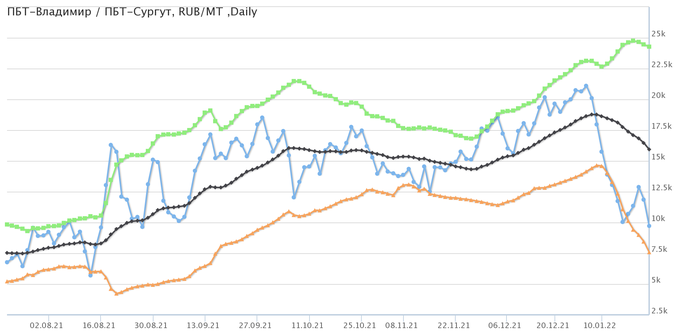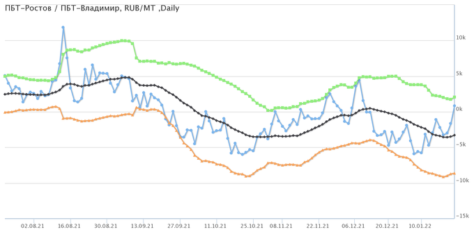 Разница цен между ПБТ на базисе Ростов и ПБТ на базисе Владимир.