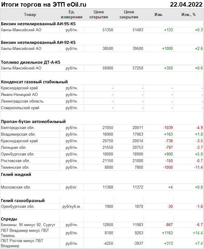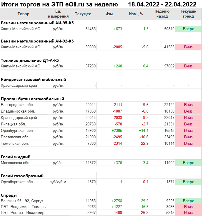 Итоги торгов на ЭТП eOil.ru с 18 по 22 апреля 2022 года