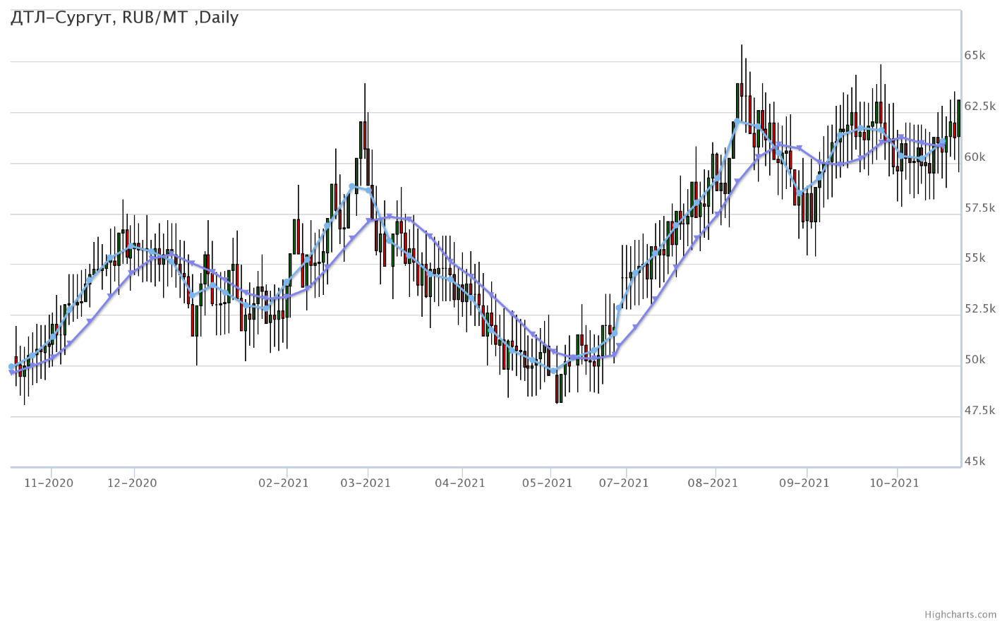 Цены на топливо дизельное ДТ-А-К5, базис поставки Ханты-Мансийский АО, выросли за неделю на 2091 рубль до 63100 рублей за тонну.