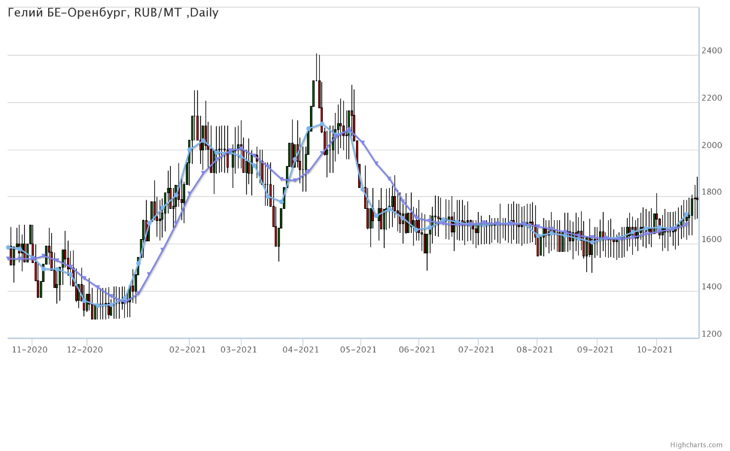 Цены на гелий газообразный, базис поставки Оренбургская область, выросли за неделю на 89 рублей до 1790 рублей за кубический метр.