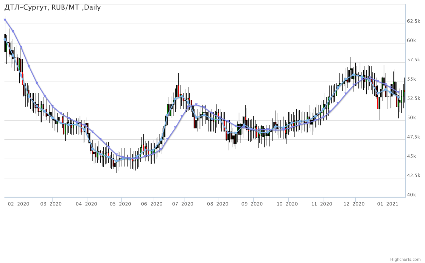 Цены на топливо дизельное ДТ-А-К5, базис поставки Ханты-Мансийский а.о., выросли за неделю на 1947 рублей до 53697 рублей за тонну.