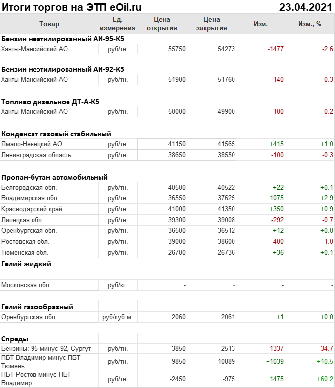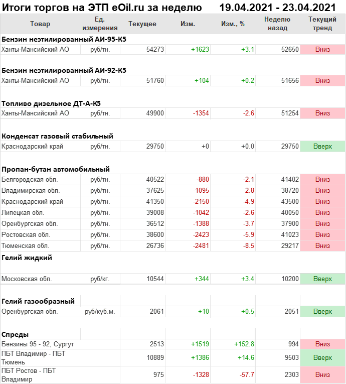Итоги торгов на ЭТП eOil.ru с 19 по 23 апреля 2021