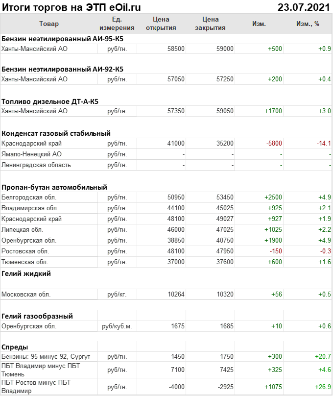 Итоги торгов на ЭТП eOil.ru с 19 по 23 июля 2021 года