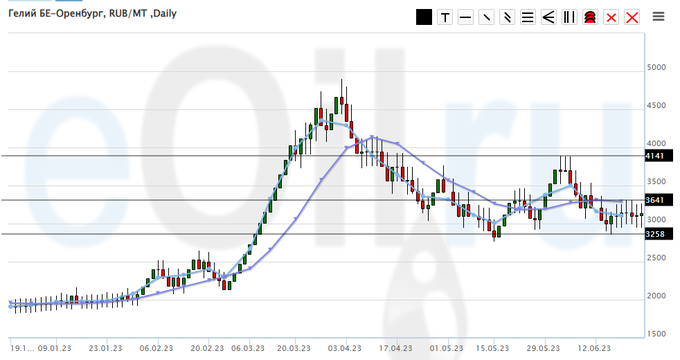 Цены на гелий газообразный, базис поставки Оренбургская область, выросли за неделю на 40.27 рублей до 3140 рублей за кубический метр.