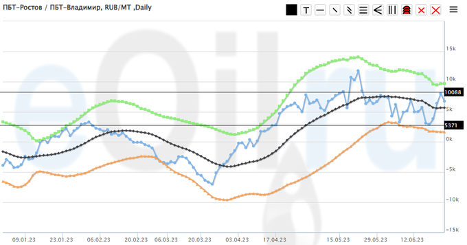 Разница цен между ПБТ на базисе Ростов и ПБТ на базисе Владимир.