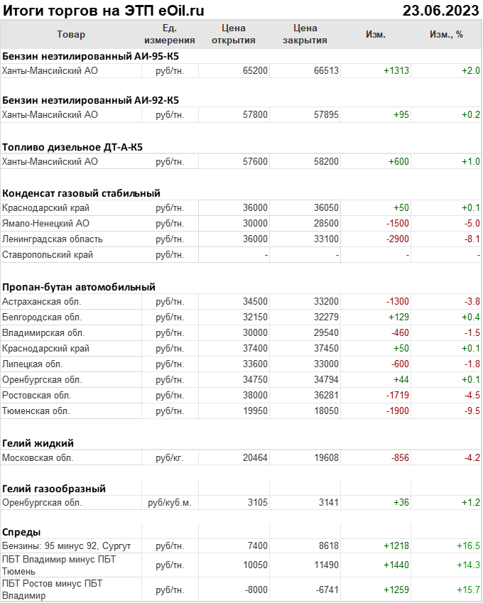 Итоги торгов на ЭТП eOil.ru с 19 по 23 июня 2023 года