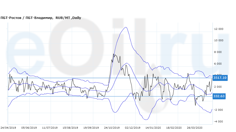 Разница цен между ПБТ на базисе Ростов и ПБТ на базисе Владимир.