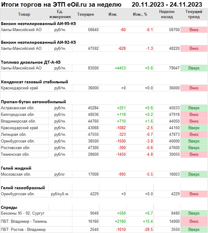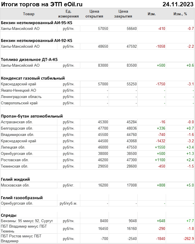 Итоги торгов на ЭТП eOil.ru с 20 по 24 ноября 2023 года