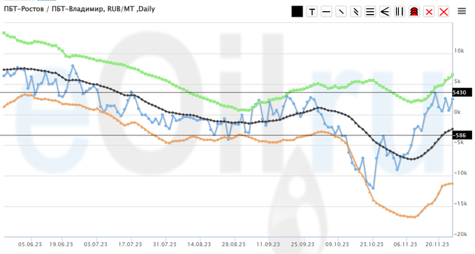 Разница цен между ПБТ на базисе Ростов и ПБТ на базисе Владимир.